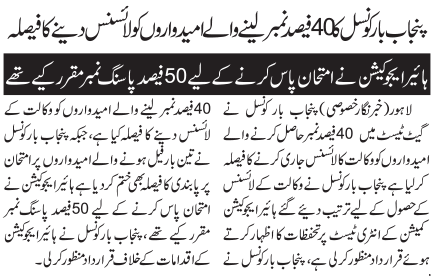 Punjab Bar Council To Give License To Those Scoring 40 Marks In Hec Law Gat